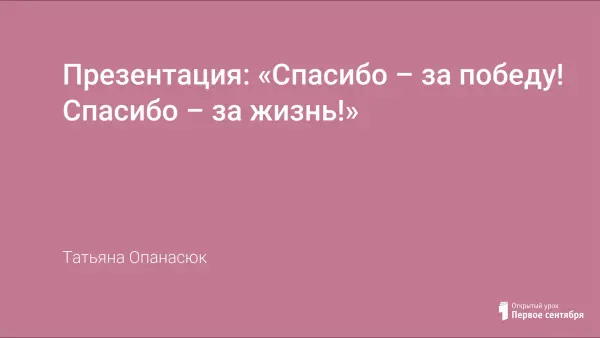 Представлена презентация по теме: «Спасибо – за победу! Спасибо – за жизнь!».