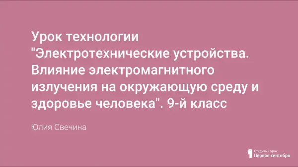 Урок технологии в 9-м классе знакомит детей с влиянием электромагнитных волн на организм человека и окружающую среду, учит способам уменьшения электромагнитного воздействия на организм человека, выявления уровня электромагнитных волн в домашних условиях. Учащиеся проводят сравнительный анализ по определению полезных качеств приготовленной пищи. Воспитывается бережливость, экономичность, аккуратность, формируется экологическое мировоззрение.