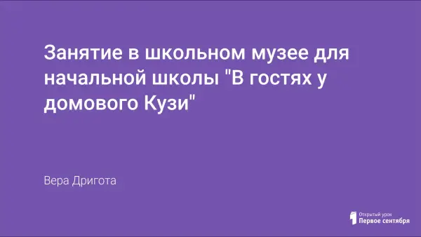 Занятие "В гостях у домового Кузи" проводится в школьном музее и имеет интерактивную форму. Оно призвано дать учащимся начальной школы представление о некоторых характерных особенностях жизни русского народа, национальных традициях и обычаях убранства и украшения жилища, назначении бытовых предметов; повышает интерес к изучению быта дореволюционной России; развивает познавательную активность и творческие способности. Через образ сказочного существа – домового – учащиеся знакомятся с бытом русской деревни XIX века.