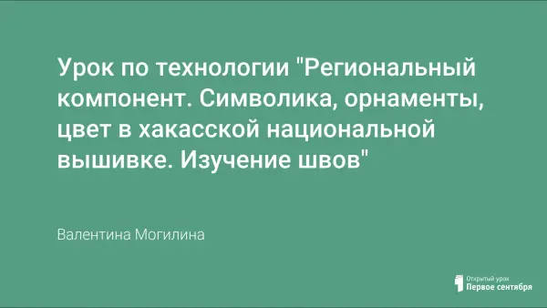 Урок по технологии "Региональный компонент. Символика, орнаменты, цвет в хакасской национальной вышивке. Изучение швов"