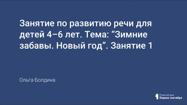 Представлено занятие по развитию речи для детей 4–6 лет. Тема: “Зимние забавы. Новый год”. Занятие 1.