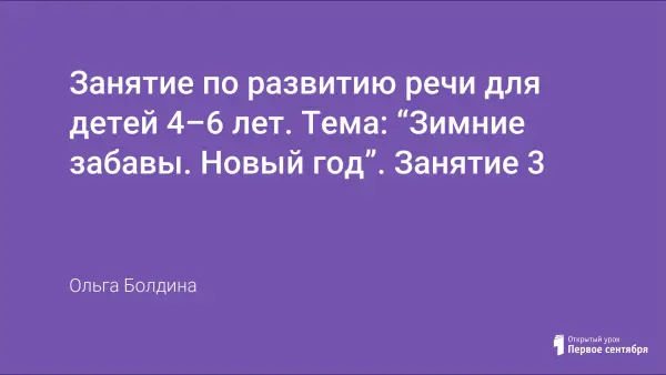 Представлено занятие по развитию речи для детей 4–6 лет. Тема: “Зимние забавы. Новый год”. Занятие 3.