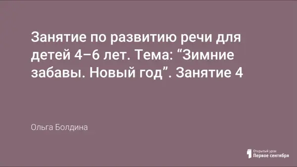 Представлено занятие по развитию речи для детей 4–6 лет. Тема: “Зимние забавы. Новый год”. Занятие 4.
