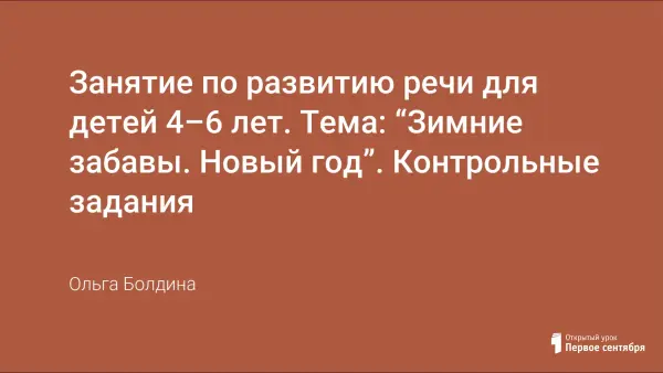 Представлено занятие по развитию речи для детей 4–6 лет. Тема: “Зимние забавы. Новый год”. Контрольные задания.