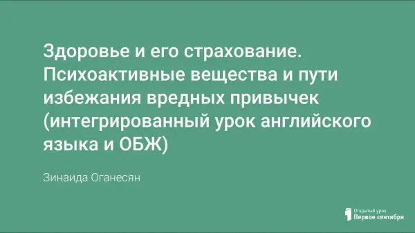 В данной работе представлен интегрированный урок по английскому языку и ОБЖ на тему "Health and health insurance. Psychoactive substances and the ways of avoiding bad habits". Этот урок проводится в 11-м классе по УМК В.П. Кузовлев "Английский язык". Для повышения интереса учащихся к данной теме мною была разработана компьютерная презентация, в которой содержатся важные факты и статистические данные по теме.