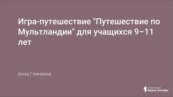 Предлагаемая игра-путешествие рассчитана на учащихся 9–11-ти лет, знакомит с мультипликацией как видом кинематографа, развивает творческие способности школьников, способствует сплочению коллектива.