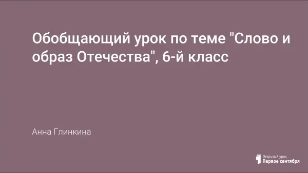 В статье предлагается конспект обобщающего урока по теме "Слово и образ Отечества" в курсе «Истоки», 6-й класс. «Истоки» - интегрированный учебный курс, ориентированный на систематизацию знаний об отечественном социокультурном и духовно-нравственном опыте. Учебный курс "Истоки" включен в региональный компонент базисного учебного плана образовательных учреждений Вологодской области. Материалы данного урока могут быть использованы во внеклассной работе, на уроках истории в среднем звене.