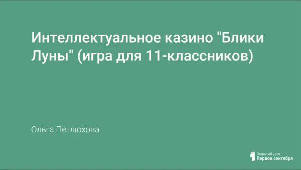 Я старалась творчески подойти к созданию игры для старшеклассников по поэзии Серебряного века "Интеллектуальное казино "Блики Луны"". Эта разработка содержит готовые к использованию материалы для проведения как урока, так и внеклассного мероприятия. Развитие интереса к творчеству поэтов Серебряного века - главная цель данной игры. Материалы адресованы учителю-словеснику, который может творчески его использовать в учебной практике.