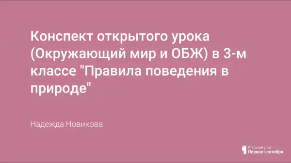 Урок экологической этики представлен в виде заочного путешествия в природу и учит ребят бережному отношению к окружающей среде. Дети при подготовке к уроку работают с различными источниками информации (периодической и энциклопедической литературой, Интернетом). Разнообразные и разноуровневые задачи никого не оставят равнодушным и помогут всем справиться с заданиями. Ролевая игра позволит учащимся представить себя в роли преподавателя.