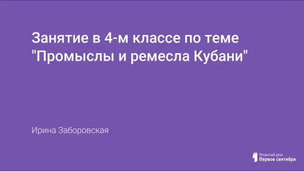 В ходе урока учащиеся знакомятся с промыслами и ремёслами кубанских мастеров. Учащиеся узнают о способах декорирования и росписи яиц, символике «писанок», обрядовых значениях.