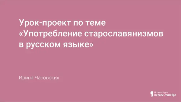 Урок, построенный в проектной технологии, предусматривает просмотр презентаций, групповую форму работы. Привлекают выступления учащихся по теме урока, защита рисунков, выразительное чтение стихов. Ученики работают со словарями, энциклопедией, составляют синквейны к словам-старославянизмам, отвечают на проблемные вопросы. Папка с рисунками служит наглядным пособием для будущего поколения учеников.