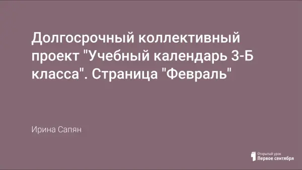 На уроке предполагается систематизировать знаний по одной из "страниц" долгосрочного коллективного проекта. Подводятся промежуточные итоги работы над проектом. Ребята больше узнают о календаре, о признаках февраля, о том, каким его видят художники, писатели, поэты. Много обращений к народным приметам, к изменениям в природе.