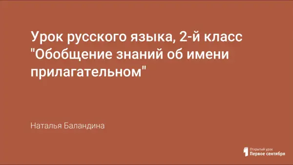Урок по русскому языку во втором классе по программе "Школа России", цель которого - обобщить знания учащихся об имени прилагательном, подчеркнуть роль имён прилагательных в речи, формировать навыки грамотного письма. Усвоение и закрепление происходит с выполнением групповых заданий, использованием медиапроектора, что даёт возможность подать материал с максимальным использованием наглядности, повысить интерес к изучению русского языка.