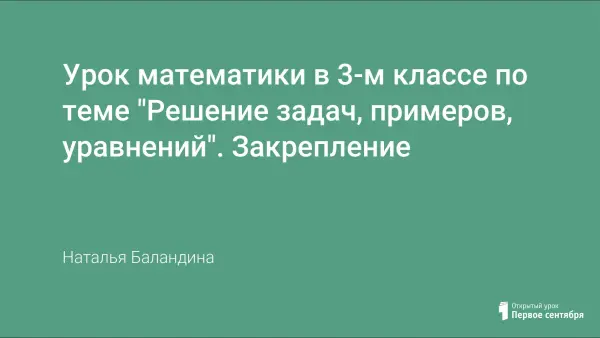 Цель урока – закреплять умение решать задачи изученных типов, совершенствовать вычислительные навыки, развивать умение рассуждать, анализировать. Усвоение и закрепление происходит с использованием медиапроектора, что даёт возможность подать материал с максимальным использованием наглядности, повысить интерес к изучению математики.