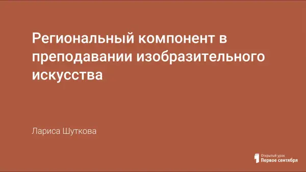 Региональный компонент в изобразительном искусстве — это может быть как отдельная программа, так и отдельные уроки, являющиеся продолжением изученного материала. Многообразие тематики. Жанров. Разнохарактерность включенных в программу материалов способствует созданию яркого, эмоционально окрашенного образа русского края. Это позволит ребенку уже с начальной школы лучше узнать и прочувствовать его красоту и самобытность. Изучение материала опирается на знания, полученные из предыдущих курсов биологии, истории, географии, литературы. На протяжении всего курса обучения школьники знакомятся с выдающимися произведениями архитектуры, скульптуры, живописи, графики, декоративно-прикладного искусства, изучая классическое и народное искусство разных стран и эпох и родного Приамурья.