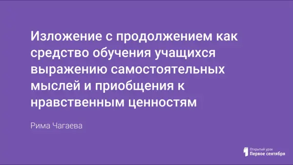 Данная работа представляет собой литературную разработку методической темы учителя по русскому языку "Изложение с продолжением как средство приобретения учащимися опыта изложения самостоятельной мысли". Творческие работы учащихся анализируются с точки зрения их нравственной оценки, умения увидеть главное в недочитанном учителем произведении и продолжить его, не нарушая логики содержания.