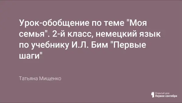 В школе № 1967 изучаются два иностранных языка. Английский — со второго класса и немецкий, как второй иностранный язык, с пятого класса. Я учу ребят немецкому языку. Чтобы обучение проходило успешно и дети не чувствовали перегрузок, своей главной задачей я поставила привить интерес учащихся к своему предмету. Курс обучения я начинаю с рассказа о стране, о ее географическом положении, о реках и городах, населении, о культуре, о великих людях с мировым именем, которые внесли огромный вклад в мировую науку, культуру, образование и т.д. Германия — это действительно очень интересная страна с многовековой историей и культурой.