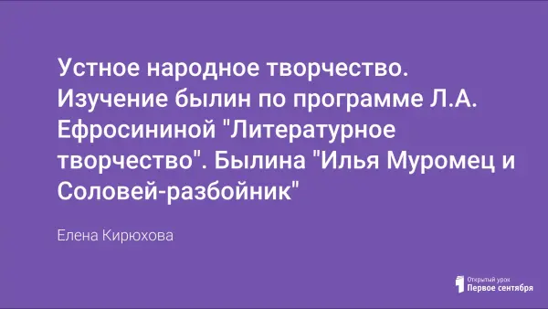 Опыт показывает, что хорошо поставленное изучение былин никогда не проходит для ребят бесследно. На долгие годы, иногда на всю жизнь запечатлеваются в памяти учащихся величественные образы богатырей, сохраняется уважение к монументальному этическому искусству народа. Предлагаю методику работы по теме "Устное народное творчество. Былины" по программе Л.А. Ефросининой, с применением моделирования, интеграции уроков в контексте культуры, дифференцированного подхода к работе с детьми.