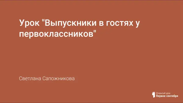 Нашей школе всего семь лет. У нас есть интересная традиция: в конце мая на празднике "Последний звонок" учителя начальной школы проводят для выпускников необычный урок. Этот урок интересен тем, что одиннадцатиклассники приходят в гости к первоклашкам.