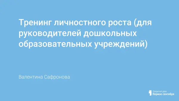 Назначение данного тренинга — начать работу по преодолению внутренних коммуникативных стереотипов, актуализировать личностную позицию руководителя с субъект-объектных на субъект-субъектные отношения, сместить стереотипные представления о себе и окружающем мире. В тренинге используются упражнения, направленные на снятие эмоционального напряжения. Показаны механизмы возникновения агрессии, а также приведены способы формирования адекватной самооценки руководителя.