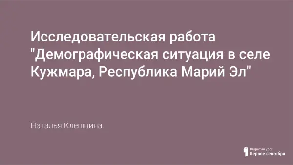 В работе описана демографическая ситуация в селе Кужмара Республики Марий Эл.