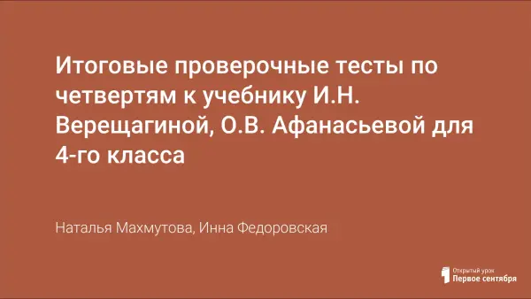 Итоговые проверочные тесты по четвертям к учебнику И.Н. Верещагиной, О.В. Афанасьевой для 4-го класса