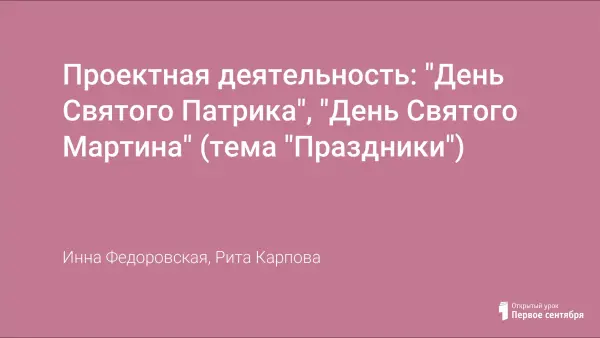 Проектная деятельность: "День Святого Патрика", "День Святого Мартина" (тема "Праздники")