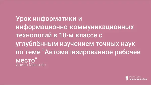 Такой урок целесообразно провести в качестве обобщающего, после того как рассмотрены и усвоены технологии подготовки текста, электронных таблиц, систем управления базой данных и машинной графики. Автор считает, что понятия интеграции и интегрированной системы являются базовыми для информационных технологий. Кроме того, концепция построения автоматизированного рабочего места, рассмотренная на этом уроке, поможет ученикам в дальнейшем быстро освоить работу с любой интегрированной системой.