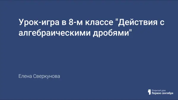 Урок-игра по теме "Действия с алгебраическими дробями" (8-й класс) позволяет обобщить, повторить и проконтролировать знания учащихся. Класс разбивается на команды, каждая из которых работает над определенным заданием. Урок помогают проводить учащиеся 11-го класса, которые оценивают результаты деятельности команд. На этом уроке действует принцип соревнования между командами. Дух соревнования усиливает эмоциональный характер игры. Такие уроки оживляют учебный процесс, повышается интерес к математике.