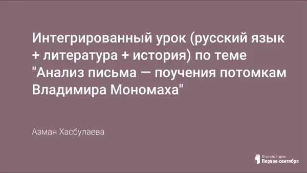 Весь материал урока направлен на то, чтобы "Поучение" Владимира Мономаха предстало перед ними как образец литературной деятельности одного из лучших людей своего времени, чтобы учащиеся увидели и прочитали язык, стиль "Поучения", поняли, какие чувства, стремления воспитывал в человеке христианский взгляд на мир и как под его влиянием и влиянием народного быта слагался идеал древнерусской жизни.