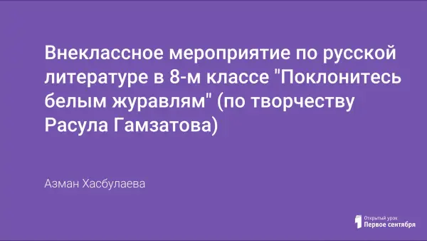 Внеклассное занятие по литературе в 8-м классе посвящено творчеству великого поэта Расула Гамзатова.