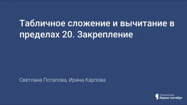 Табличное сложение и вычитание в пределах 20. Закрепление