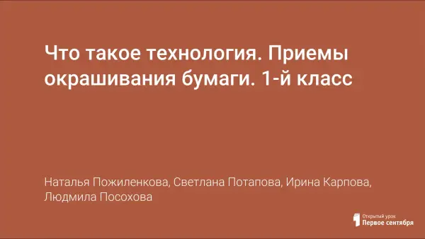 Урок технологии в 1-м классе знакомит с понятием «технология»; с приемами окрашивания бумаги: мятая бумага, цветной клейстер. Урок построен с учетом возрастных и индивидуальных особенностей учащихся. каждый ребенок имеет возможность проявить свое творческое воображение. Выполнять задания ученик может на свой индивидуальный вкус. Урок способствует воспитанию аккуратности, учит доводить начатое дело до конца.