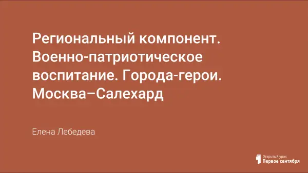На протяжении многих лет работы учителем английского языка я вижу, что не во всех регионах включен в программу материал по региональному компоненту. Считаю необходимым включать в программу также материал по военно-патриотическому воспитанию, что значительно расширит кругозор детей и знание культуры не только англо-говорящих стран, но и культуры, истории собственной страны, региона, края. Для того, чтобы развить интерес к предмету, выработать активную форму работы на уроке мы вместе с детьми находим материал о родном регионе, переводим на английский язык, разрабатываем сценарий урока и презентуем его. Один из таких уроков это о городах-героях Москве, Салехарде, где ребятам дается возможность самим найти информацию, запомнить новую лексику, научиться задавать вопросы и отвечать на них, работать над несложными проектами в рамках изученного материала. Отметим, что подобные темы ребятам очень интересны, так как прослеживаются смежные дисциплины, такие как история, география, изобразительное искусство, музыка. Всё это в совокупности положительно влияет на мировоззрение и воспитание патриотизма.