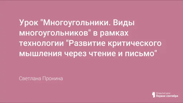 Подготовлен и проведен в рамках технологии "Развитие критического мышления через чтение и письмо", включает в себя три стадии: вызов, осмысление, рефлексия. На уроке рассматриваются определения важнейших понятий, доказательство теоремы, а также применение теории в повседневной жизни. В течение всего урока знания добываются учащимися самостоятельно; они работают в группах; обмениваются информацией; при этом повышается ответственность за собственное образование, развивается память и речь.