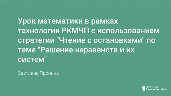 Урок подготовлен и проведен в рамках технологии "Развитие критического мышления через чтение и письмо" с использованием стратегии «Чтение с остановками», включает в себя три стадии: вызов, осмысление, рефлексия. На уроке рассматривается решение неравенств и их систем. Учащиеся самостоятельно добывают знания; в течение всего урока они работают в парах, в группах; обмениваются информацией. Урок сопровождается презентацией.