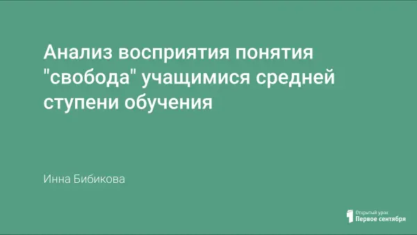 Одним из центральных понятий в курсе "Обществознание" является понятие "свобода''. Сложность и многозначность понятия "cвобода", его связь с морально-этическими и правовыми проблемами диктует необходимость изучения данной темы в старшей школе.