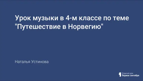 Данный урок-путешествие знакомит учащихся с особенностями музыкальной культуры норвежского народа, а также с творчеством Э.Грига (норвежского композитора). Материал урока расширяет, обогащает слуховой запас школьников, позволяет им с интересом постигать культуру других народов.
