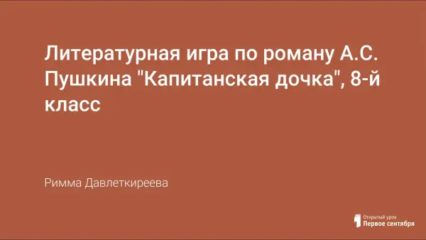 Представлен сценарий литературной игры по роману А.С. Пушкина "Капитанская дочка".