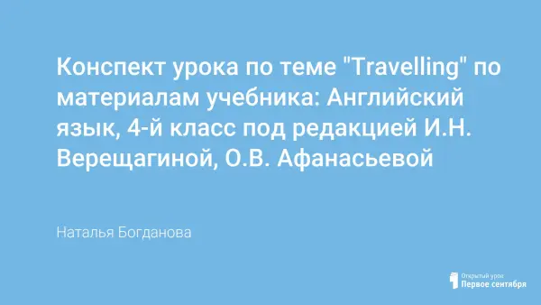 Конспект урока по теме "Travelling" по материалам учебника: Английский язык, 4-й класс под редакцией И.Н. Верещагиной, О.В. Афанасьевой
