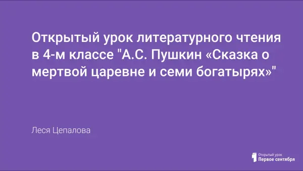 Урок знакомит учащихся со сказкой А.С.Пушкина "Сказка о мертвой царевне и семи богатырях".