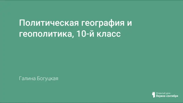 В учебнике В.П.Максаковского "География", 10-й класс мало уделяется времени изучению темы "Политическая география и геополитика", поэтому предлагаю провести отдельный урок по этой теме для понимания учениками 10-го класса такого сложного материала, как геополитика. В начале урока можно спросить у учащихся: "Может ли кто объяснить, что такое политическая география и геополитика?" Как правило, ученики средних общеобразовательных школ затрудняются дать ответ на поставленный вопрос. К концу же урока у них сформировывается данное понятие и они могут аргументировать свой ответ.