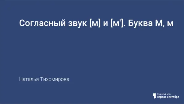 Цель урока: познакомиться со звуками [м] и [м'] и буквой М, которая их обозначает.