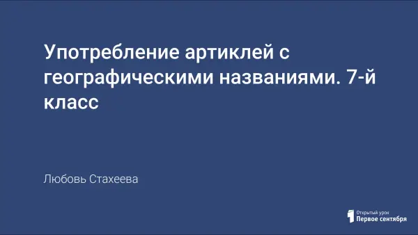 В уроке представлен прием логического запоминания употреблении артиклей. Для этого ведется последовательный рассказ от самого большого объекта (планета) к самым маленьким (улица) с применением наглядного материала, в данном случае – презентации. Выделение другим цветом артиклей и географических названий также поможет лучшему восприятию информации.