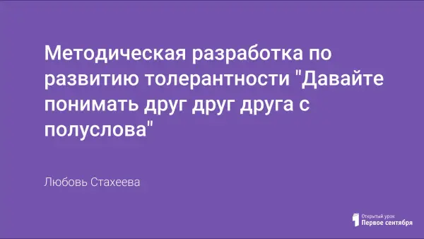 Представлен урок «Неделя толерантности». В урок включено 5 внеклассных мероприятий, различных по видовой структуре, оформление выставки творческих работ и родительское собрание.