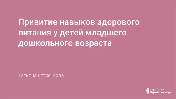 Привитие навыков здорового питания у детей младшего дошкольного возраста