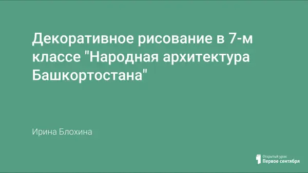 На данном уроке учащиеся знакомятся с традиционным декором – деревянной резьбой в народной архитектуре родного края XIX–XX веков, с мастерством народных умельцев, основными способами украшения жилищ, что помогает воспитывать уважение и восхищение богатым художественным наследием прошлого. В приложении к уроку использованы фотографии, сделанные во время экспедиции и натурного обследования памятников народного зодчества Башкортостана в 30–70-х годах прошлого века.