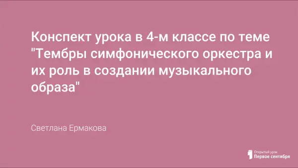 Данный урок предназначен для обобщения знаний детей о тембрах симфонического оркестра проблемным методом. Для этого учитель вводит ситуацию с получением учениками письма юного композитора, сочинившего музыкальные иллюстрации к «Сказке о царе Салтане» А.С.Пушкина. Групповая работа с партитурами и их корректировка в компьютерной программе, прослушивание новых вариантов иллюстраций позволяют учащимся самостоятельно прийти к выводам о роли тембров в создании музыкального образа произведения.