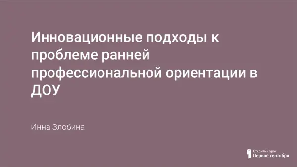 Инновационные подходы к проблеме ранней профессиональной ориентации в ДОУ