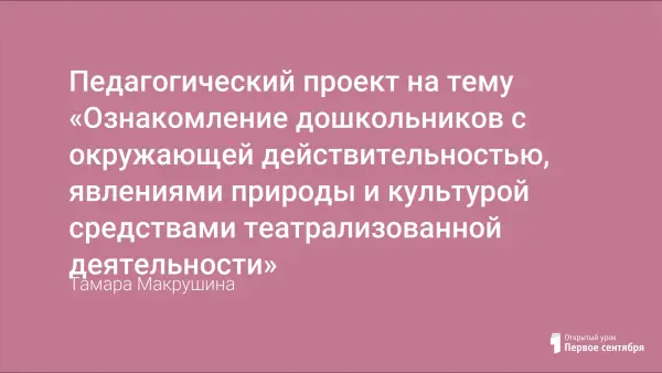 Цель проекта: всестороннее развитие детей и закрепление у детей об окружающей действительности, явлениями природы и культуры, через театрализованную деятельность у детей дошкольного возраста.